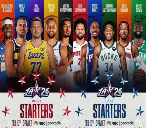 今日,NBA正式官宣全明星首发阵容: